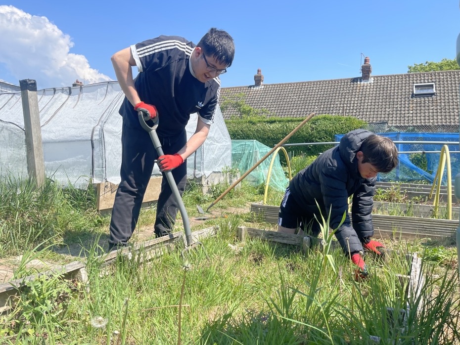 Our young people work to maintain the land to grow produce to use in our kitchens. Carpentry skills are also developed when constructing flower beds, fences and sheds.